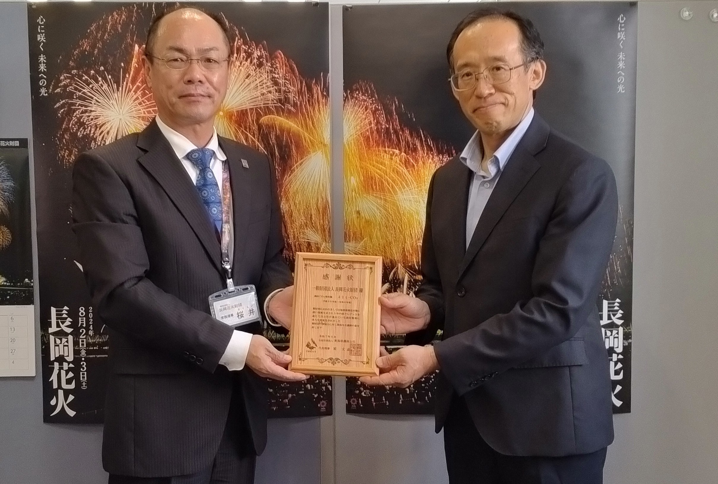 一般財団法人長岡花火財団様に感謝状を贈呈しました